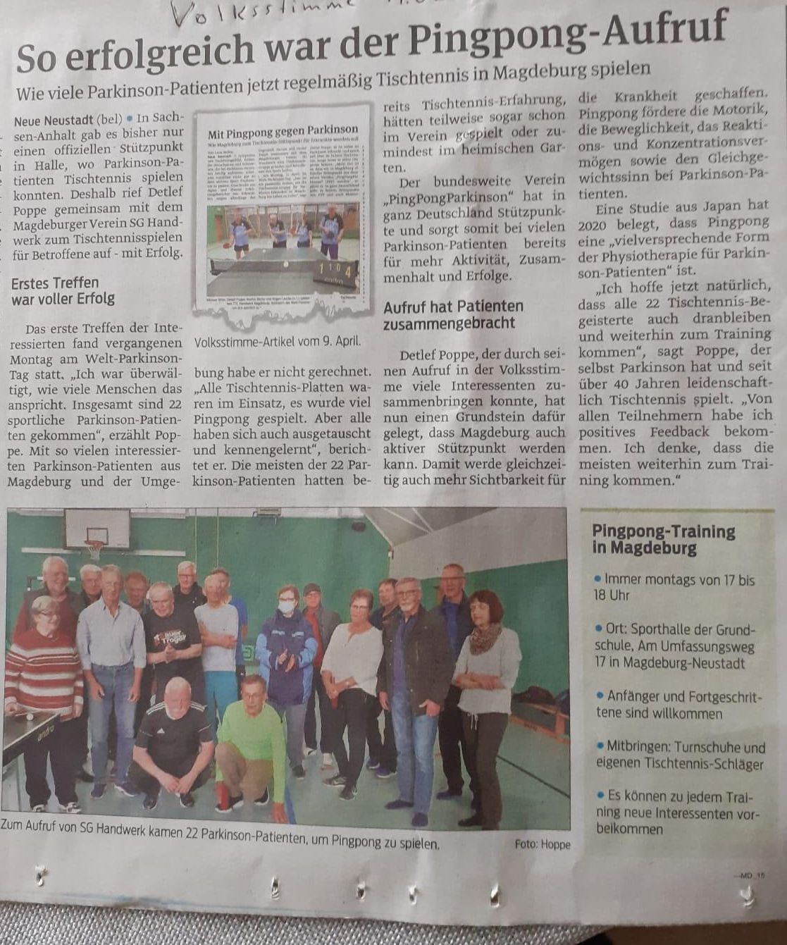 Read more →Elke Starke, unsere Stützpunktleiterin in Cottbus, im Interview bei Radio Cottbus zur Geschichte von PingPongParkinson und den Aktionen zum Weltparkinson-Tag […]