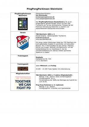 ist der bundesweite Zusammenschluss von kooperierenden Vereinen und Einzelpersonen, der sich – mit dem Mittel Tischtennis – überwiegend ehrenamtlich um Personen mit Parkinson und deren Angehörige kümmert.