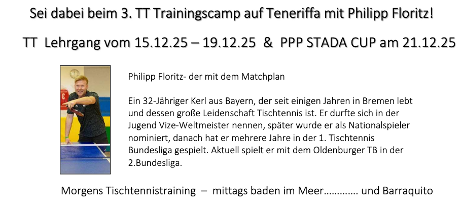 3. TT-Trainingscamp / 2. STADA-Cup auf Teneriffa mit Philipp Floritz